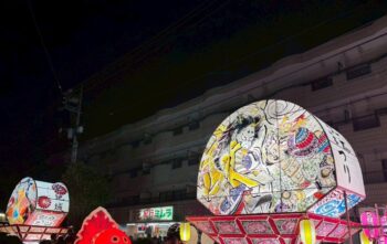 昼間は各種パフォーマンスが披露され、夜は伝統のお囃子が響くなか、扇形の範頼ねぷたや市内コミュニティ団体などが作った大小さまざまなねぷたなどが北本駅西中央通りを練り歩きました。