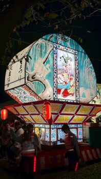 昼間は各種パフォーマンスが披露され、夜は伝統のお囃子が響くなか、扇形の範頼ねぷたや市内コミュニティ団体などが作った大小さまざまなねぷたなどが北本駅西中央通りを練り歩きました。