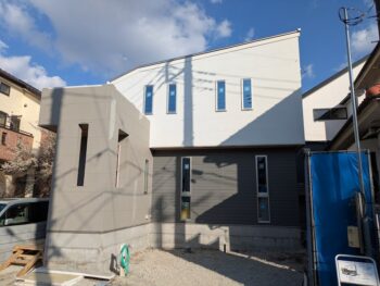 外壁サイディング工事やコーキング工事、塗装工事などが完了しました。足場を解体し、外観をご覧いただけるようになりました。