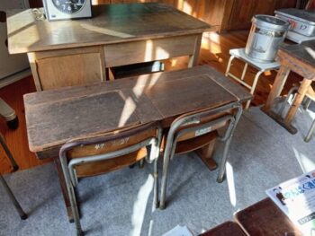 また、水没した学校の長野原町立川原湯小学校が、ダムのほとりに移築されていて校舎の中を見学しました。教室には私が小学生1・2年生頃に使っていたのに近い、2人掛けの机が展示してあり、隣の席の子と真ん中から出るなと小競り合いしたり、木の天板に名前が彫ってあったのを思い出し、木のぬくもりを感じる懐かしい思い出がよみがえりました。