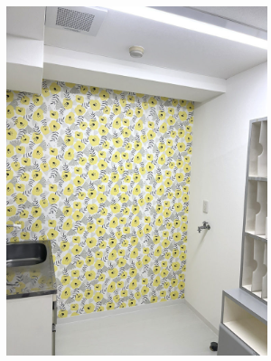 • 花柄のアクセントクロスが印象的な空間になりました。