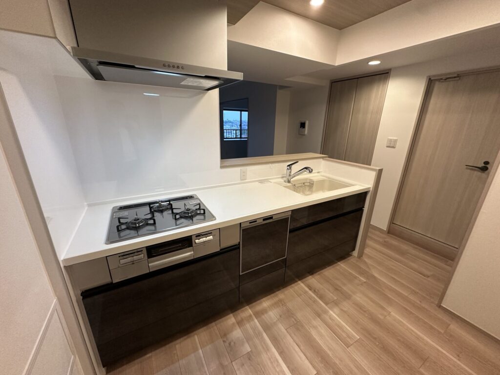 キッチンの仕切り壁は無くし、開放感のあるリビングに仕上げました。
