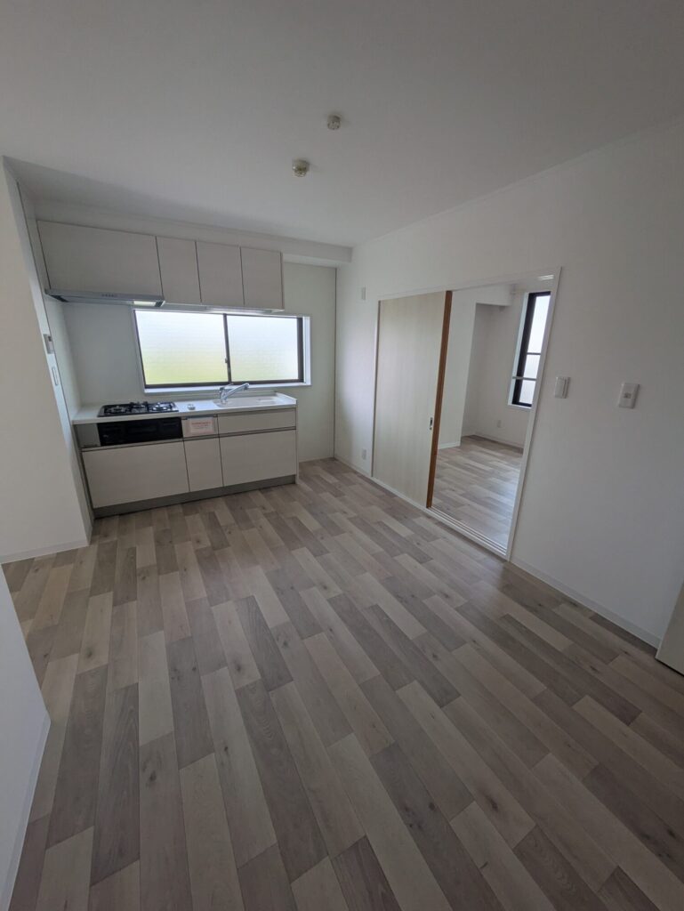 キッチンは簡易交換型キッチン・コンロ交換し、コストを抑えつつ魅力のあるリビングに仕上がりました。