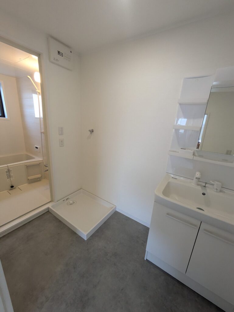 アッシュグレー基調の床を使用し、シンプルスタイルにしました。