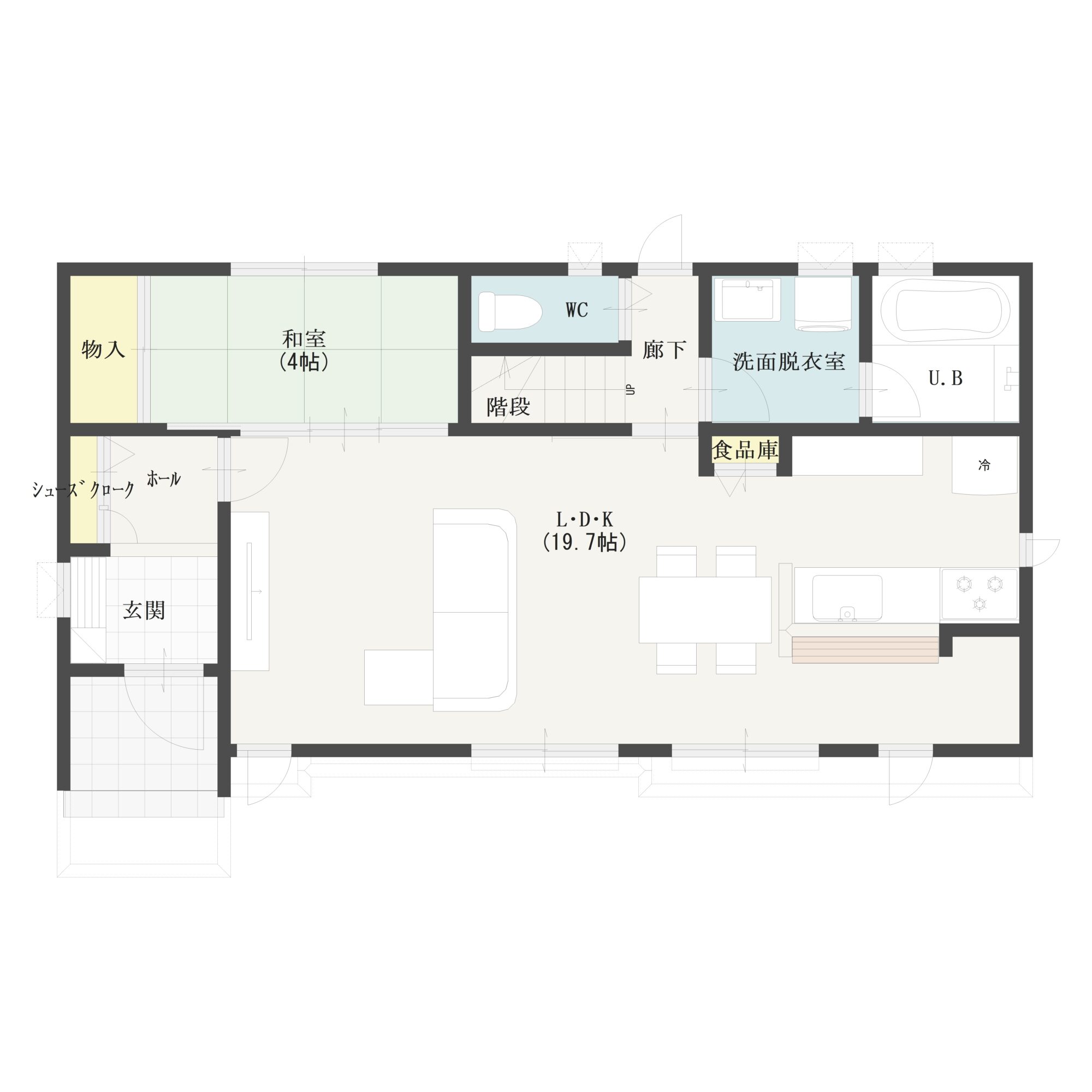 ダイニングとの距離が近いため、空間全体の一体感が生まれやすい住まいを演出しています。