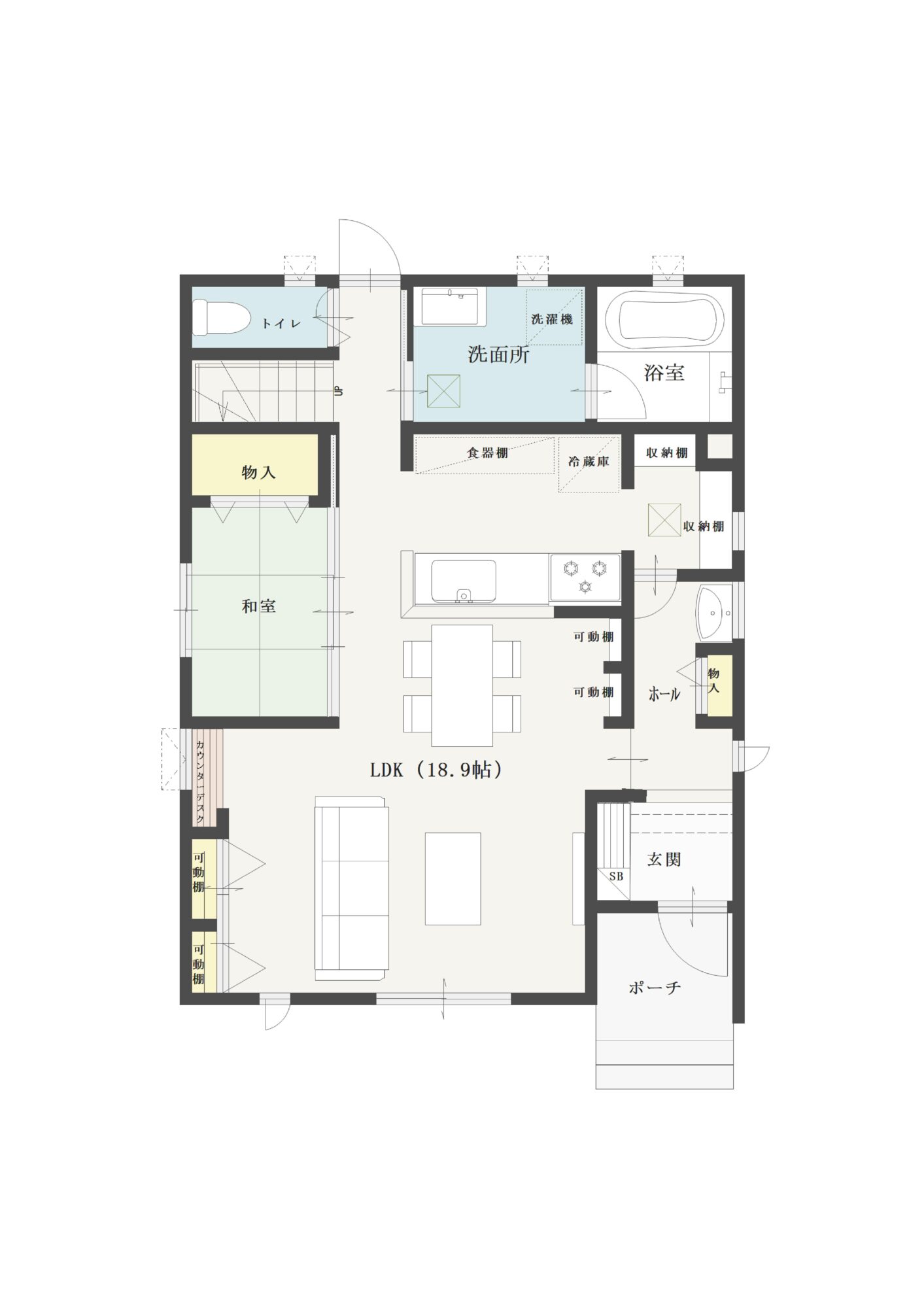 玄関からキッチンまでまっすぐの家事ラク動線になっています。