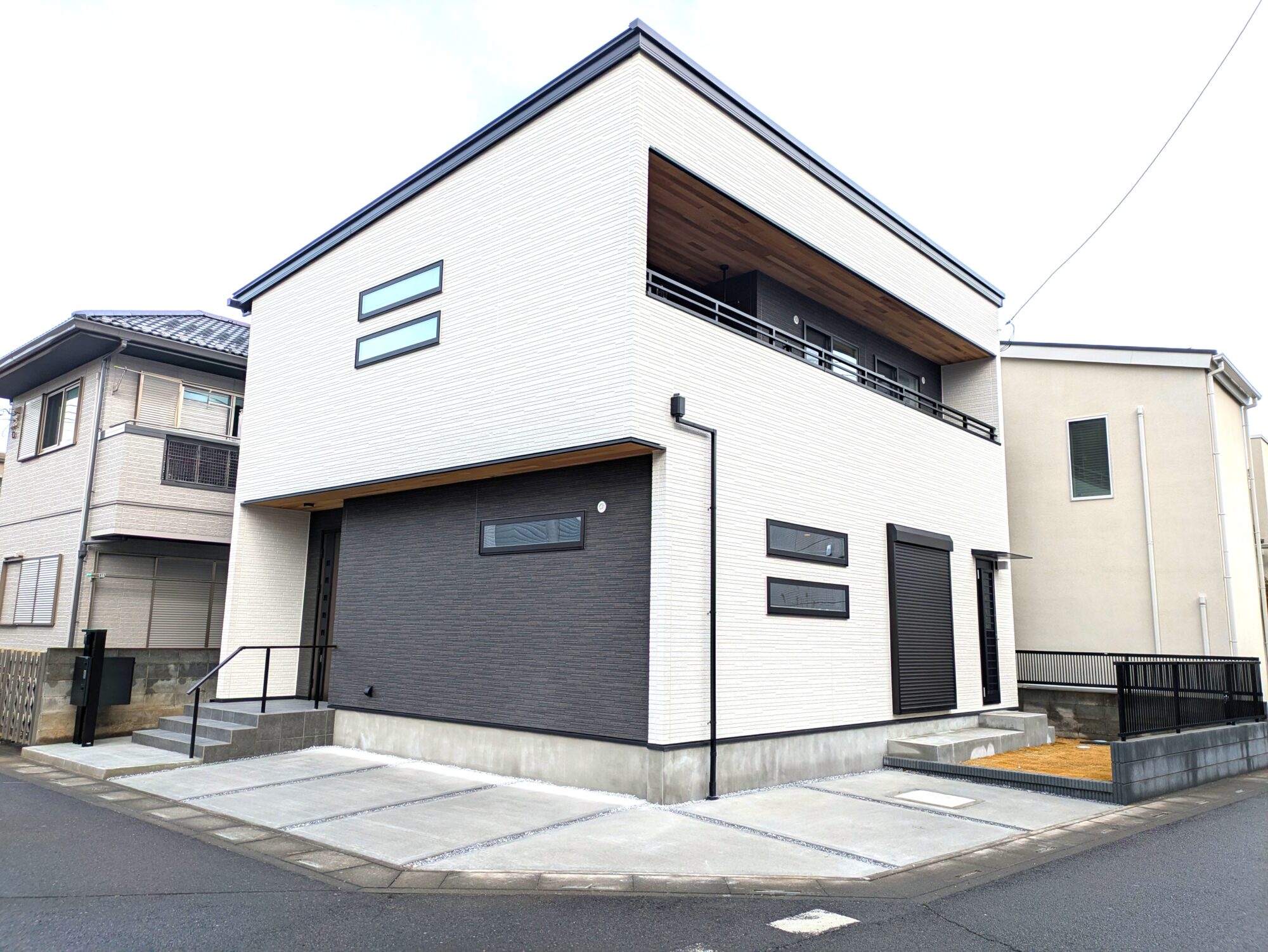 外観は白と黒を基調とし、ブラックのサッシが全体を引き締めるスタイリッシュな住まいになりました。