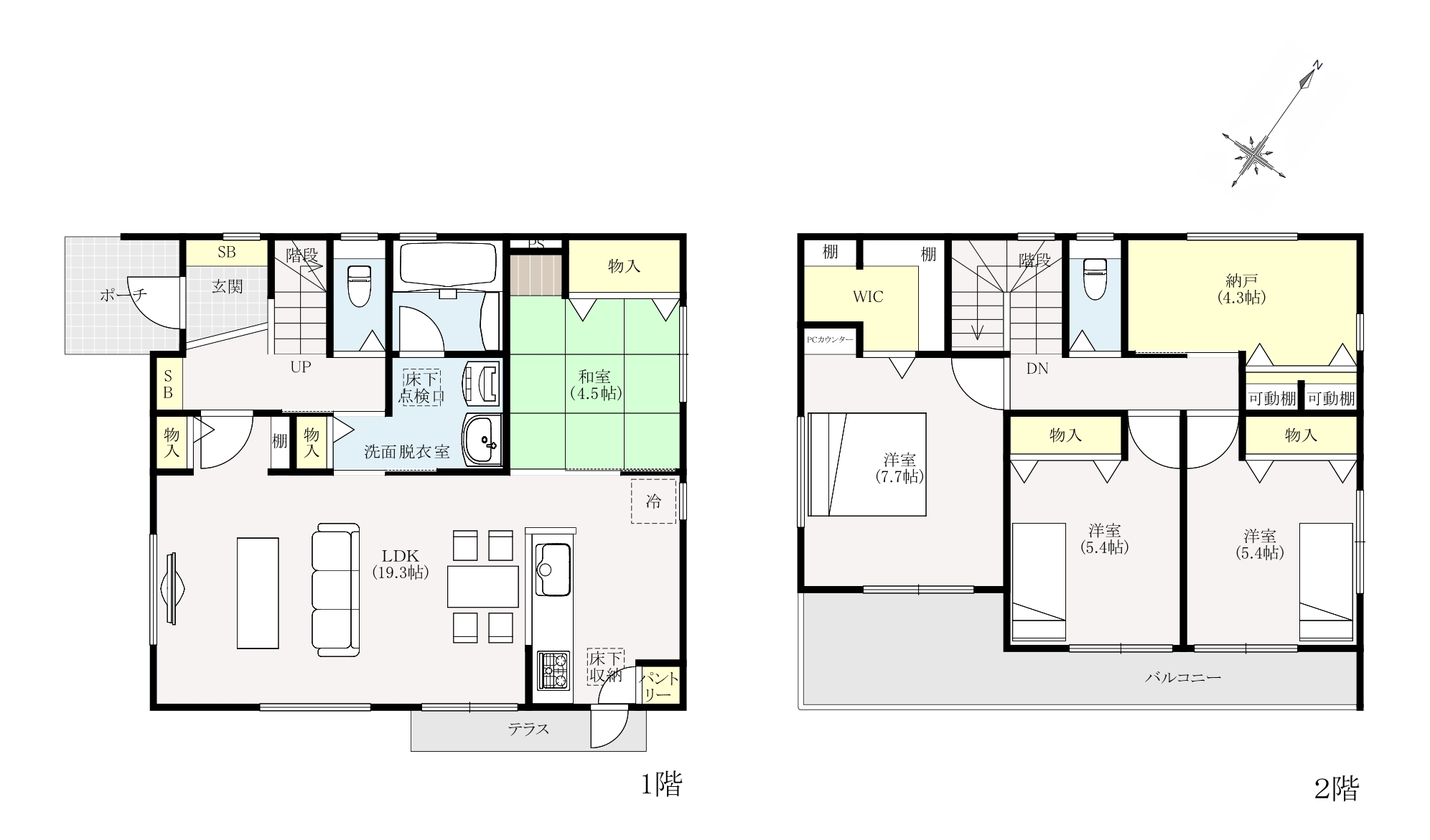 各部屋に収納を備えているため住空間をすっきり保つことができ、水回りもまとまっているため、